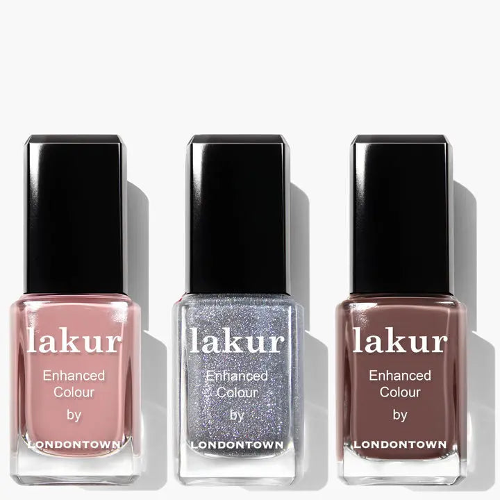 Londontown's Trio Nail Polish Set combines nourishing Florium Complex with professional-grade formulation for enduring color and radiance. Each set features a curated selection of sophisticated hues, from striking jewel tones to delicate sheers, designed to complement any occasion. The advanced lacquer technology ensures a luminous finish that resists chipping, keeping your nails looking polished and healthy for weeks.